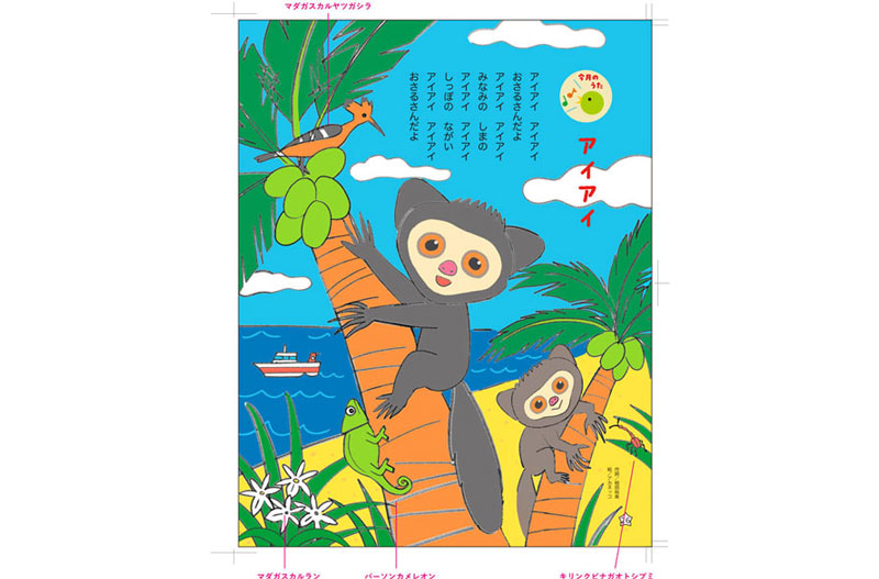 世界文化社 ワンダーえほん 8月号 うたのページ「アイアイ」を描かせていただきました。